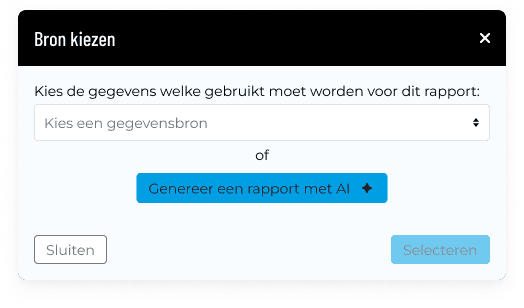 Figuur 6, Rapport genereren met gegevensbron of AI